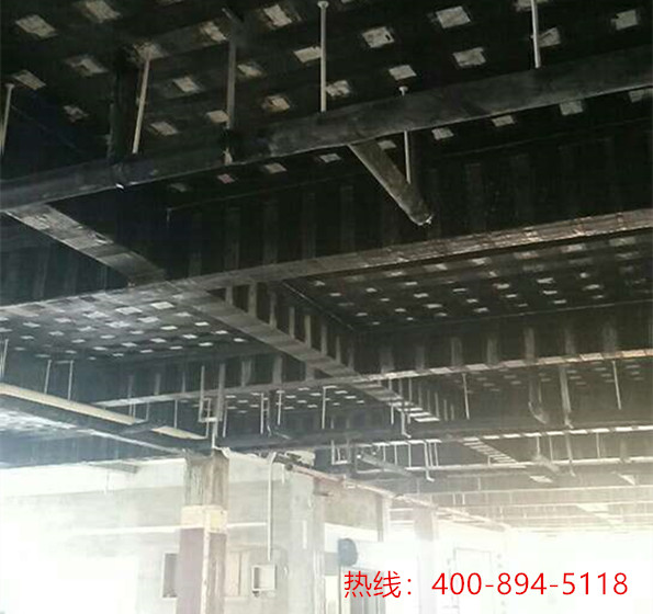 碳纖維布全部粘貼好后進(jìn)行表面防護(hù),主要為噴涂防火涂料,耐火極限需滿足設(shè)計(jì)要求。