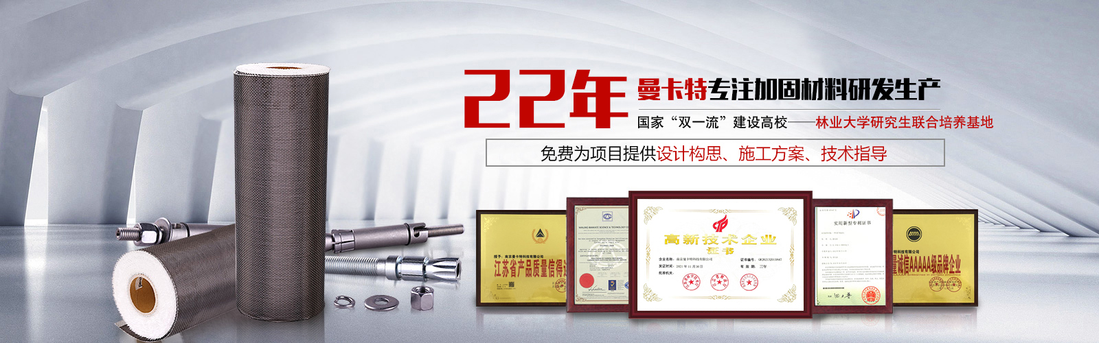 歡迎您來(lái)到南京曼卡特科技有限公司,曼卡特主產(chǎn)碳纖維布,植筋膠,預(yù)埋槽道,后擴(kuò)底機(jī)械錨栓,定型化學(xué)錨栓等加固材料